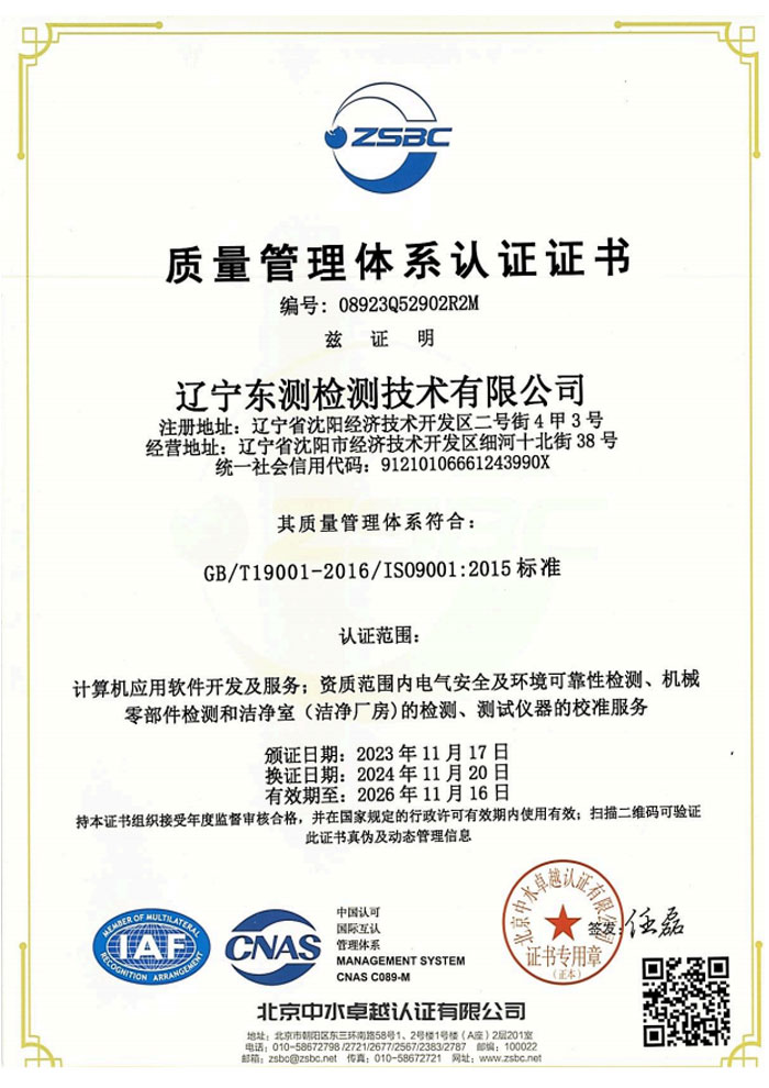 遼寧東測檢測技術(shù)有限公司成立于2007年6月21日,專注于為客戶提供計(jì)量、檢測以及技術(shù)咨詢與培訓(xùn)的第三方計(jì)量檢測機(jī)構(gòu)。遼寧東測檢測技術(shù)有限公司通過了中國合格評(píng)定國家認(rèn)可委員會(huì)認(rèn)可(CNAS),獲得檢驗(yàn)檢測機(jī)構(gòu)資質(zhì)認(rèn)定(CMA),憑借著高效的服務(wù)網(wǎng)絡(luò)、雄厚的技術(shù)實(shí)力以及全面的業(yè)務(wù)范圍,本著“科學(xué)、公正、準(zhǔn)確、真誠”的質(zhì)量方針,為社會(huì)提供優(yōu)質(zhì)計(jì)量檢測服務(wù),打造國內(nèi)具有價(jià)值的計(jì)量技術(shù)機(jī)構(gòu)。